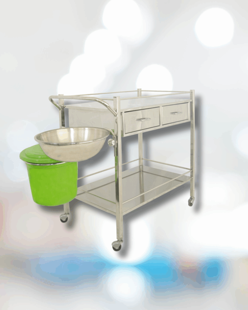 IMEDIN PRIMERA DRESSING TROLLEY (IMD-DT-01) Main component made from stainless steel sheet and stainless steel pipe Have 2 drawers Have